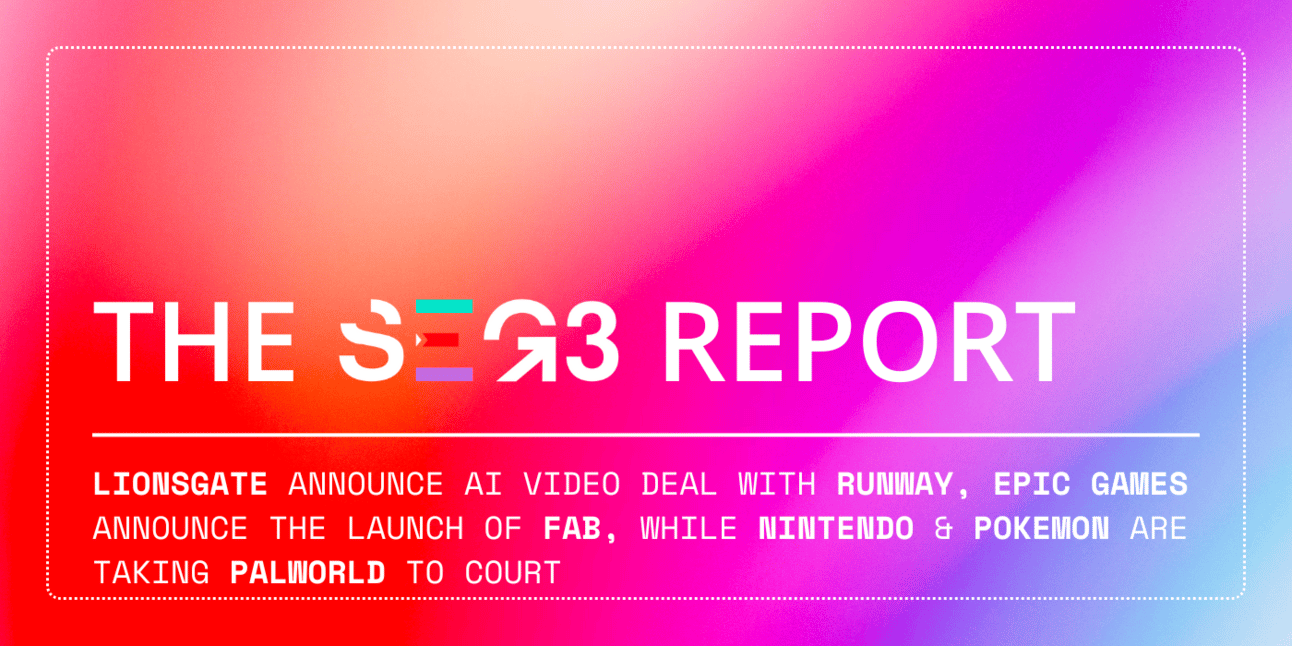 This week, Lionsgate announce AI video deal with Runway hot on the heals of the California Gov. signing a deal aimed to protect Hollywood from AI. Epic Games announce the launch of Fab; the culmination of a well considered series of acquisition. And Nintendo & Pokemon are taking Palworld to court - “Pokemon with guns”, indeed!