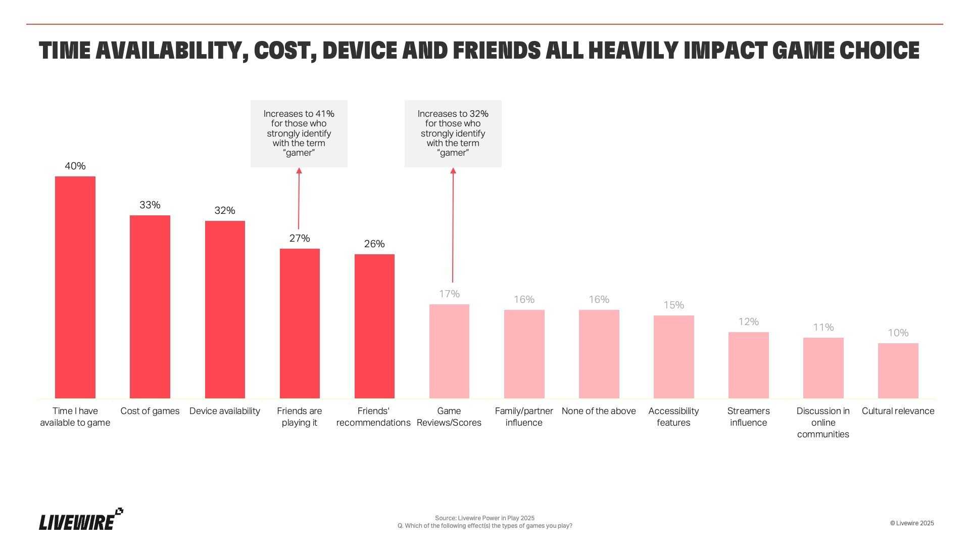 Friends fuel discovery and investment - with 1 in 4 choosing games because their circle plays them, proving gaming is still a social funnel.