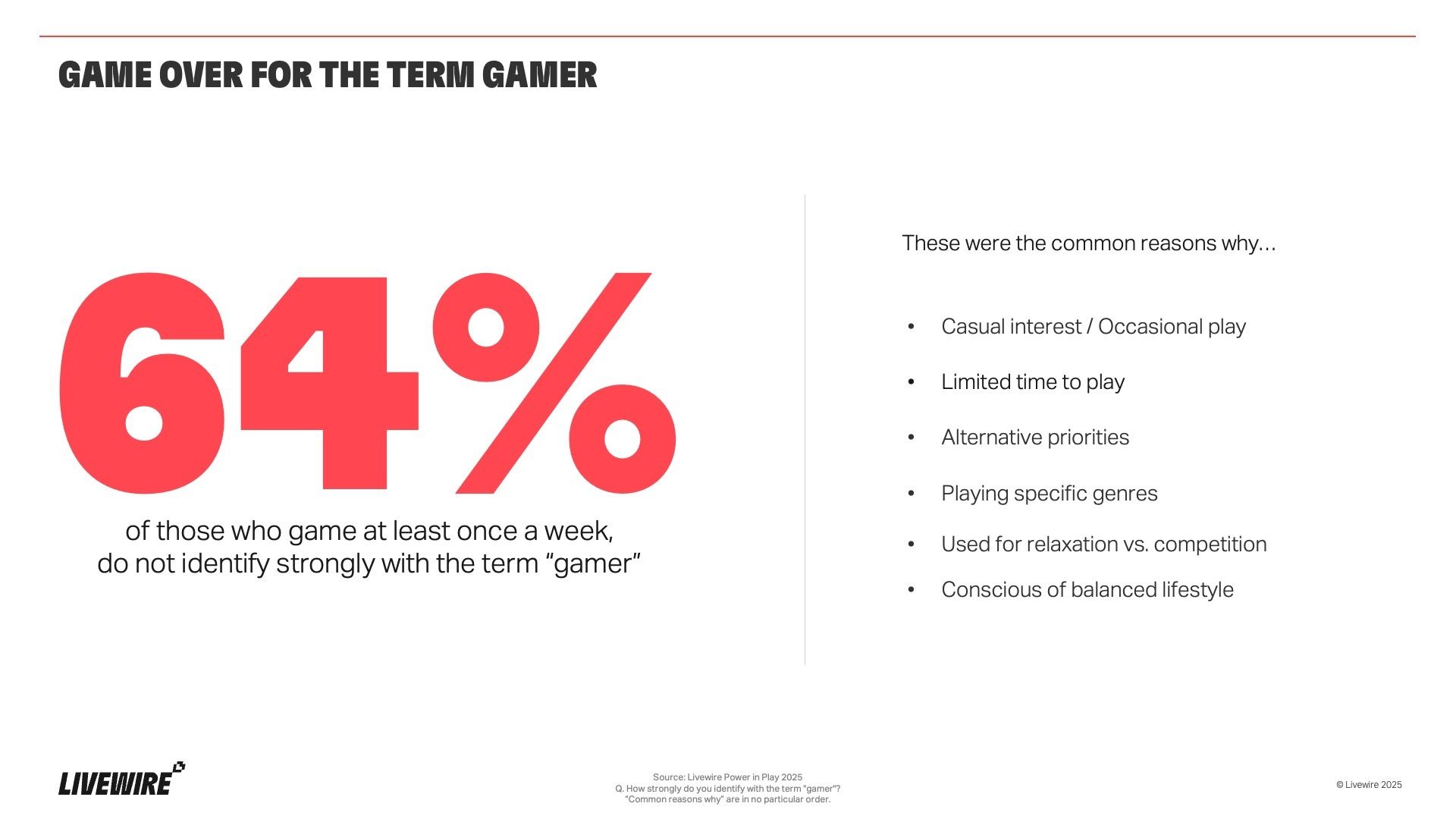 And in new data from Livewire & PMCI Play, we get a deep insight into how players really see themselves, and how that changes how brands should think about showing up.